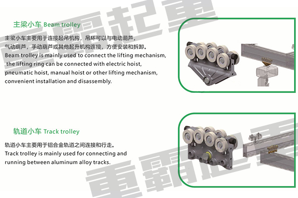鋁合金軌道起重機小車分為葫蘆小車和軌道小車兩種。